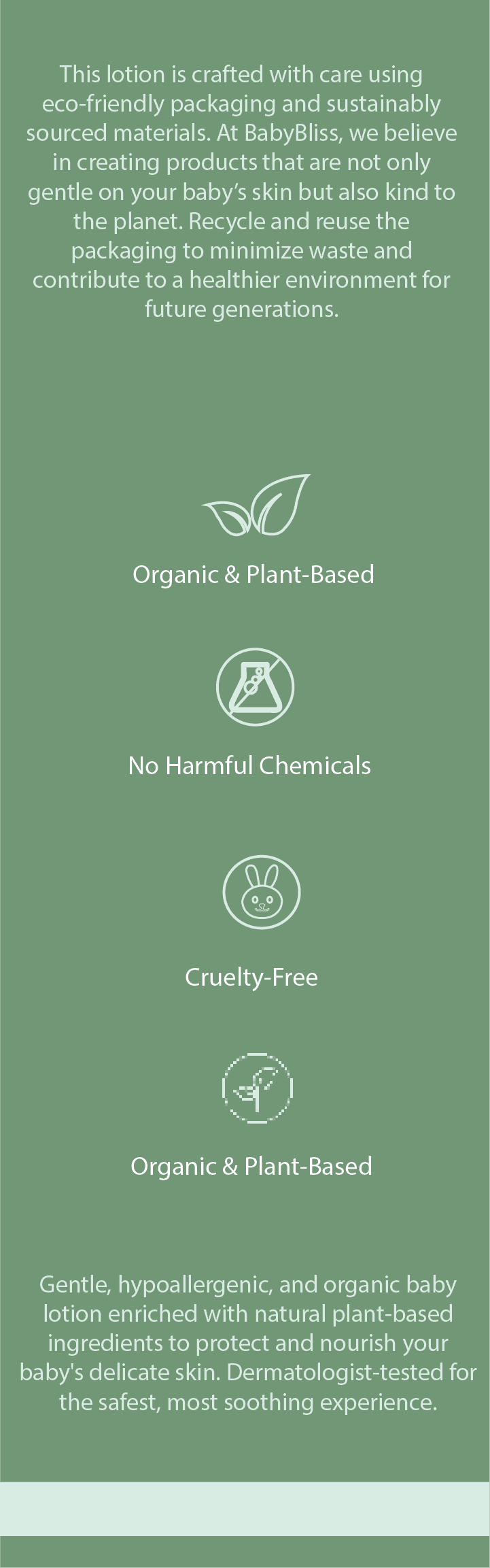 In a world filled with chemical-heavy products, we envisioned a brand that speaks the language of nature—a blend of organic ingredients, mindful packaging, and gentle nourishment for delicate baby skin. From the first drop of lotion to the last loving touch, BabyBliss is designed to be a part of those tender moments between parents and their little ones.
