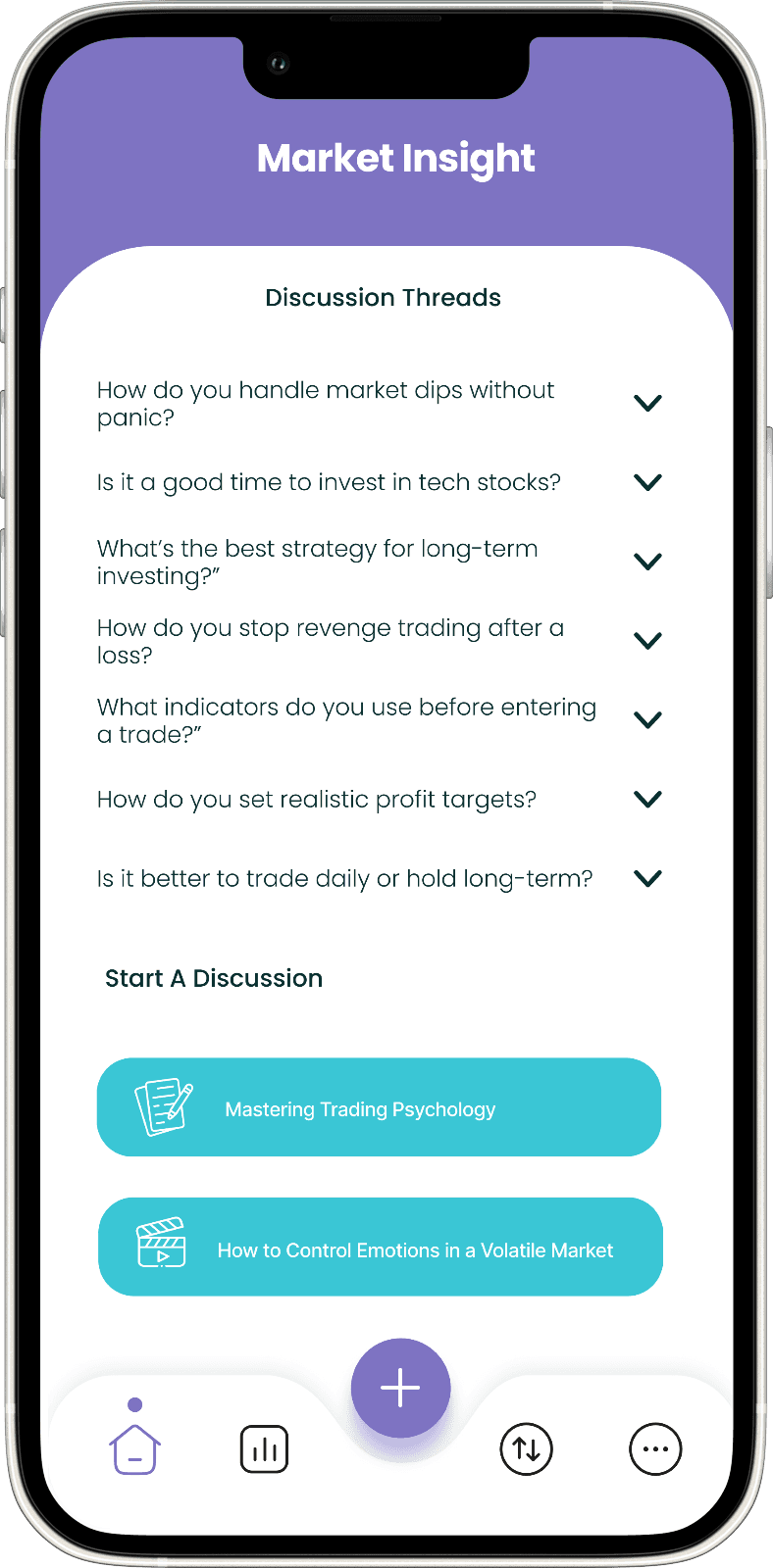 A safe, judgment-free space where traders can share experiences and receive emotional support from others facing similar challenges.